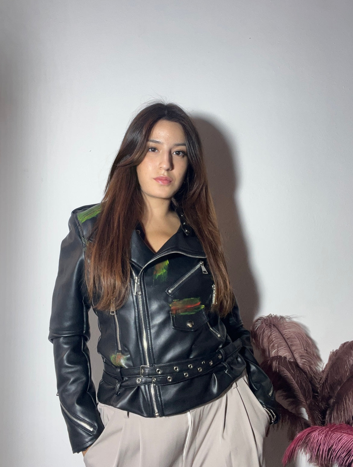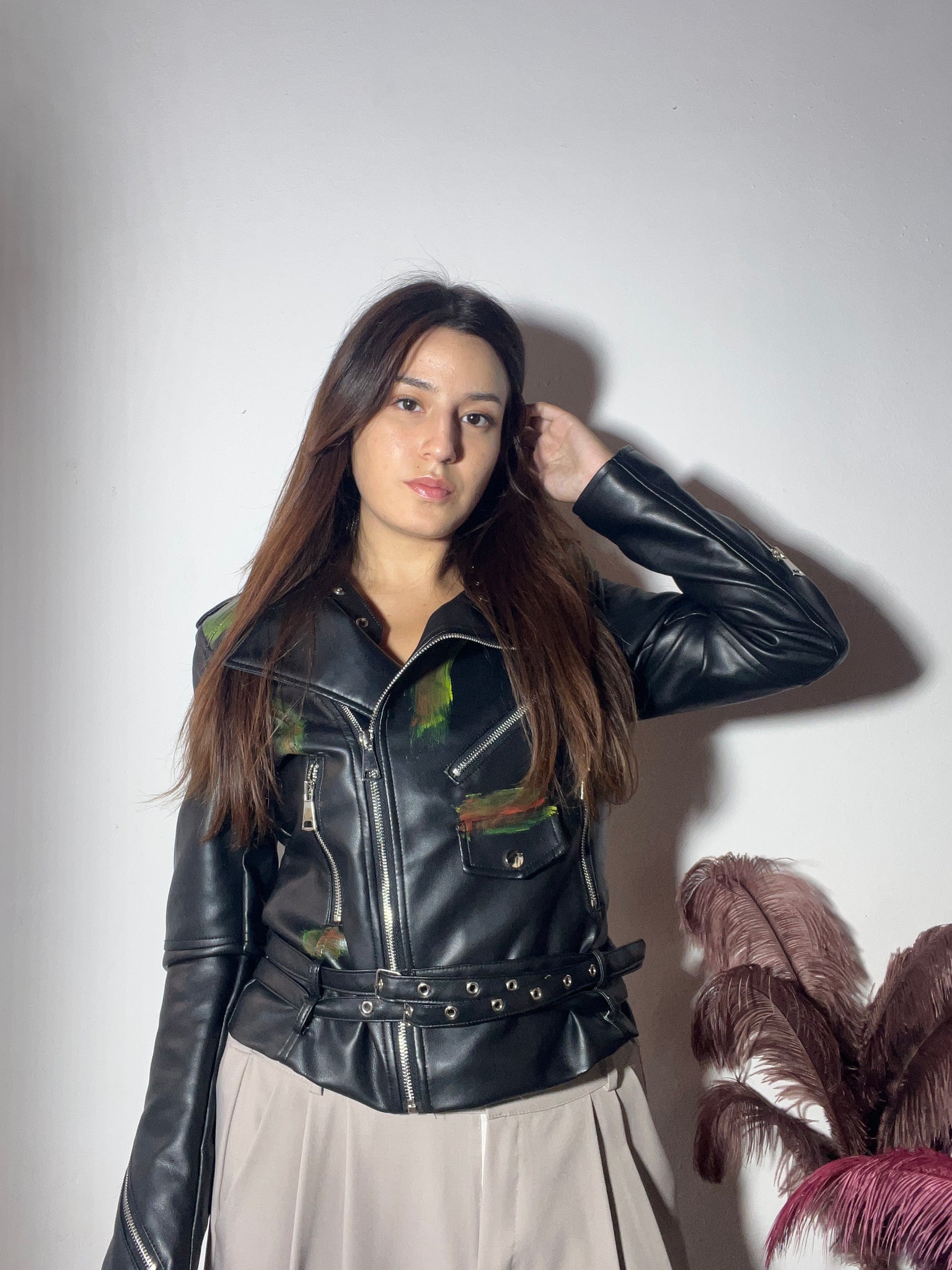Giacca di pelle nera, dal taglio moderno e grintoso. Interno foderato, zip in metallo argentato, dettagli trapuntati su spalle e maniche. Tasche laterali con cerniera, vestibilità slim. Perfetta per un look urbano e deciso.