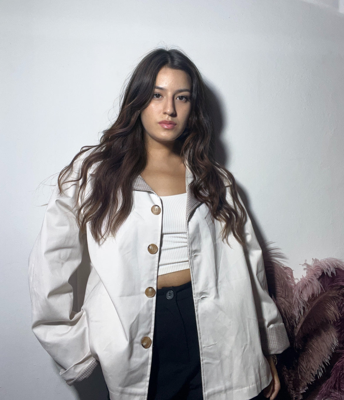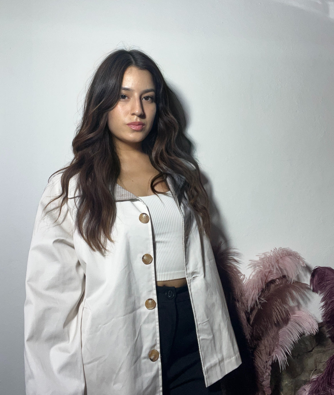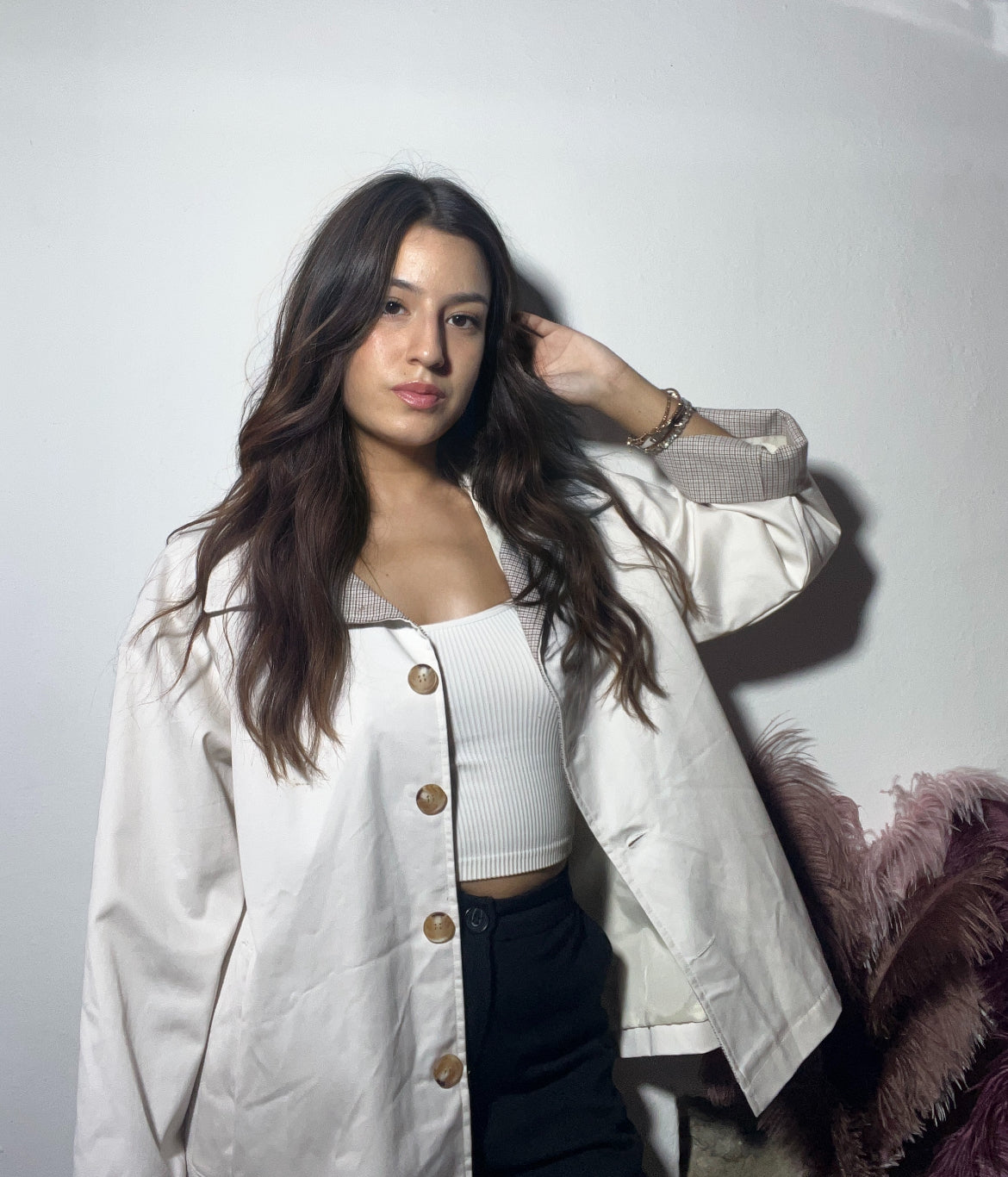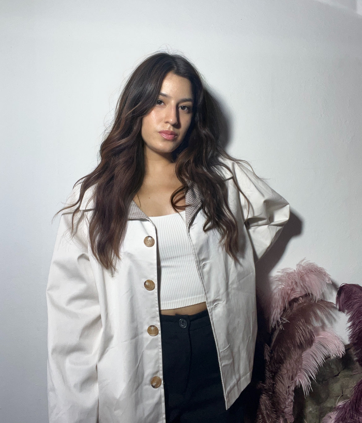 Trench corto e impermeabile color panna, perfetto per questa stagione. Il suo taglio è versatile e i bottoni tono su tono lo rendono un capo elegante e minimale, facile da abbinare.